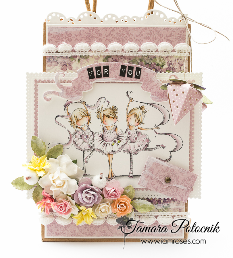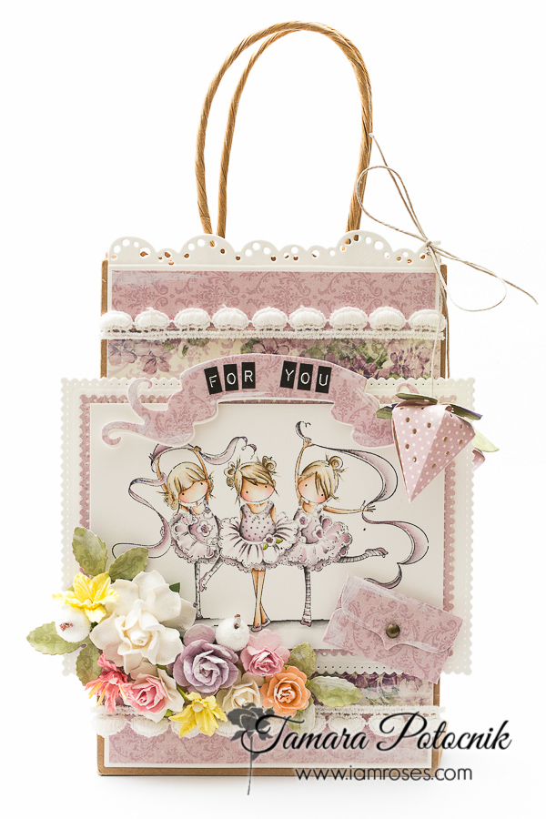 For this challenge I decorated a craft gift bag. I coloured Tiny dancers from Stamping Bella and used some of the gorgeous Pion papers.