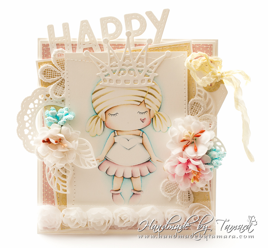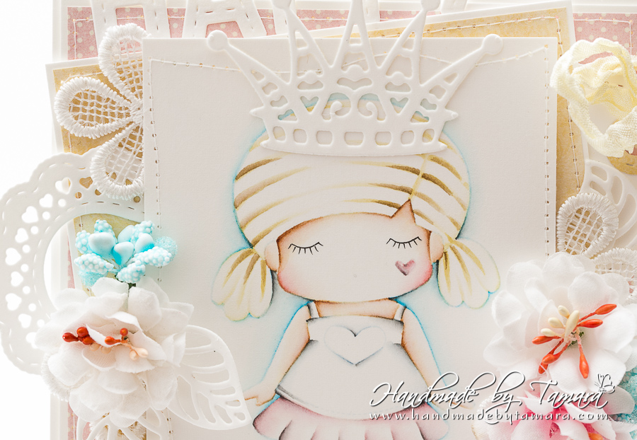 For this card I coloured Paper Doll Marci – Sweetheart with no-lines technique.