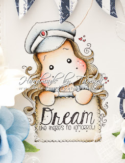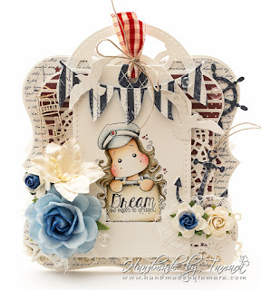 I used Student Tilda with sign on my card. She‘s from We made it collection, 2016. I made a marine/sea themed card with the gorgeous Life by the Sea papers from Maja Design.