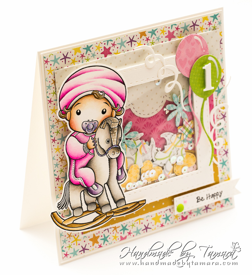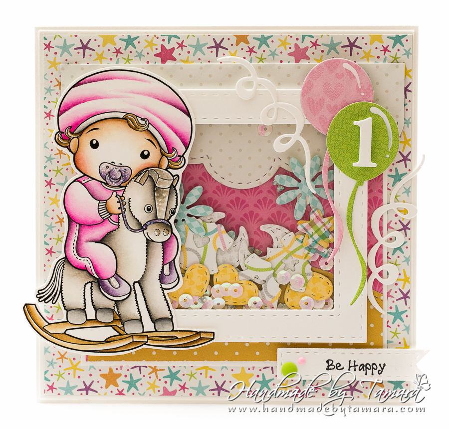 Welcome to la-la land crafts Friday inspiration. Our theme this week is Anything goes and I made a 1st Birthday Baby Girl card. I used Rocking Horse Baby Luka and coloured him in pink.