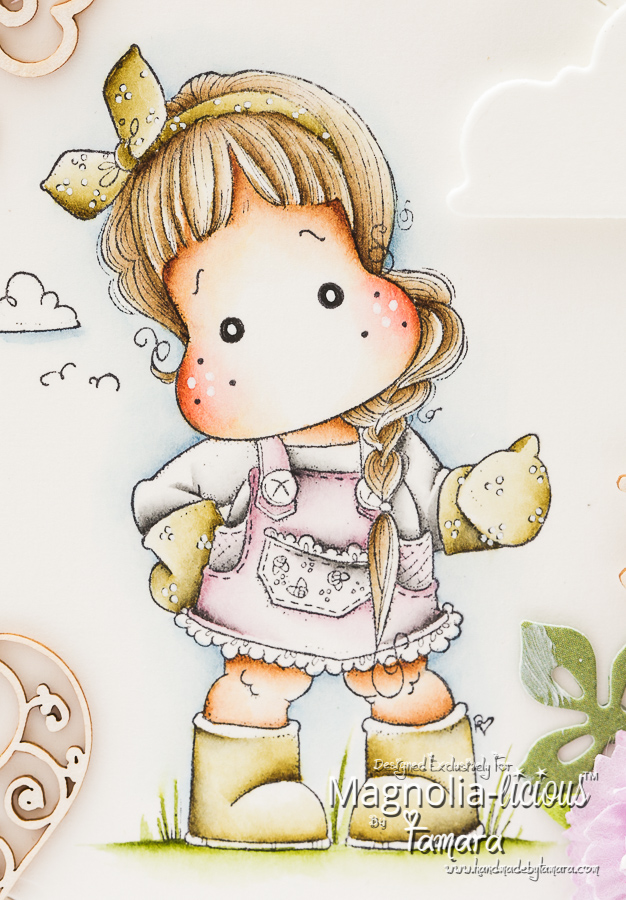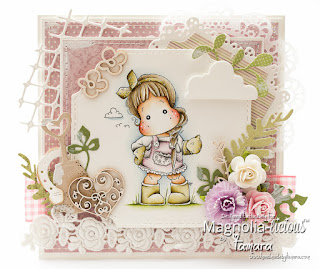 I used Tilda working in the garden from the new Seaside collection, 2016. Image was coloured using Distress markers and ink pads.