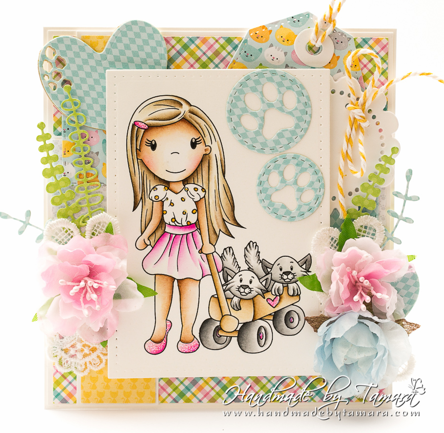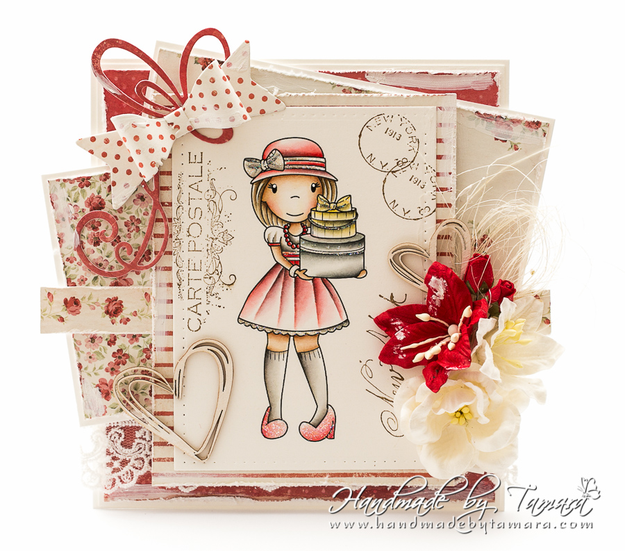 Today I’m showing you a few cards that I made for Paper Nest Dolls. Those of you who will meet Christine at the craft shows will also be able to see these cards in person. I’m also showing you a few cards that I made for the Cretief meet Carten magazine. The latest issue came out yesterday and a sneak peak of a tutorial I made for them is in on the front page. Does that makes me a cover girl? hehee ….
