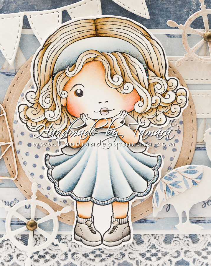 For my nautical card I coloured my fav Marci – Shy Marci. I think blue looks good on her. 🙂