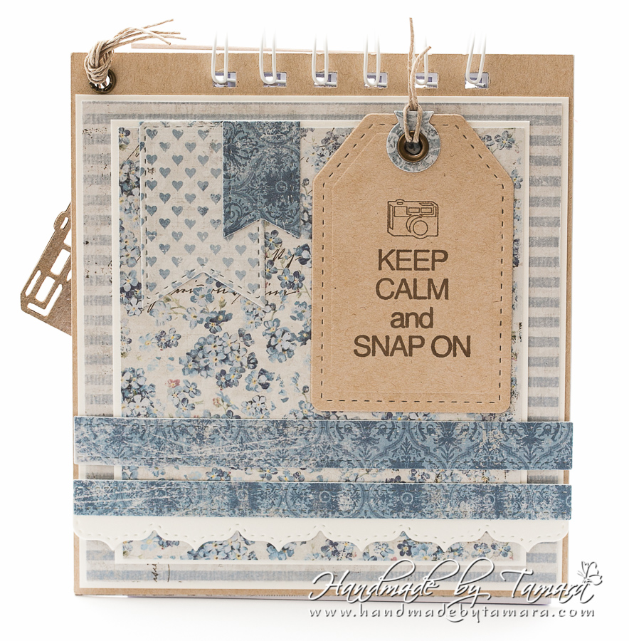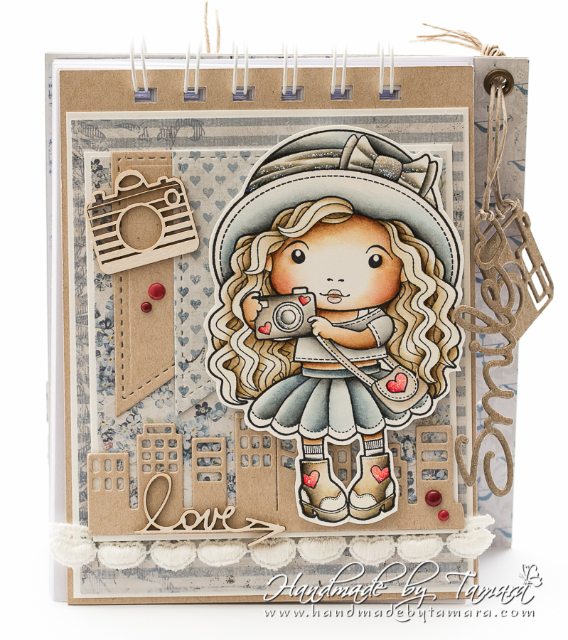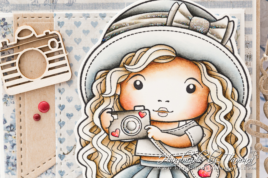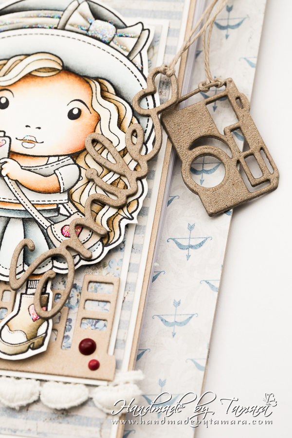 I used two stamps on this project. On the front there is Marci with Camera and on the back I stamped a sentiment from Photo Elements (Keep Calm and Snap On).