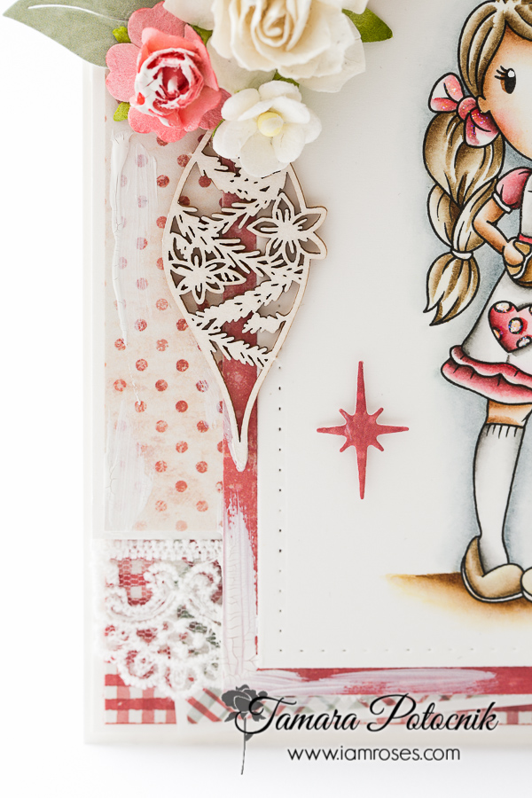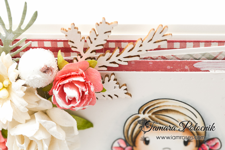 Today I’m sharing my card for I am roses challenge blog. I made a card featuring an image called Gingerbread Ellie from Paper Nest Dolls. Image was coloured using distress markers and ink pads.