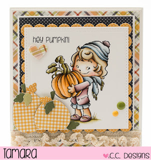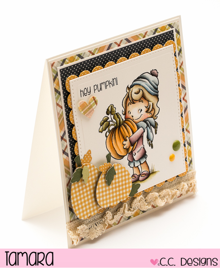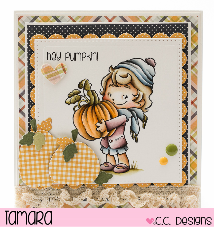 Today I’m sharing with you my last card made with C.C. Design’s September release. I used Cinnamon with Pumpkin. This one is part of a new range of stamps called Rustic Sugar.