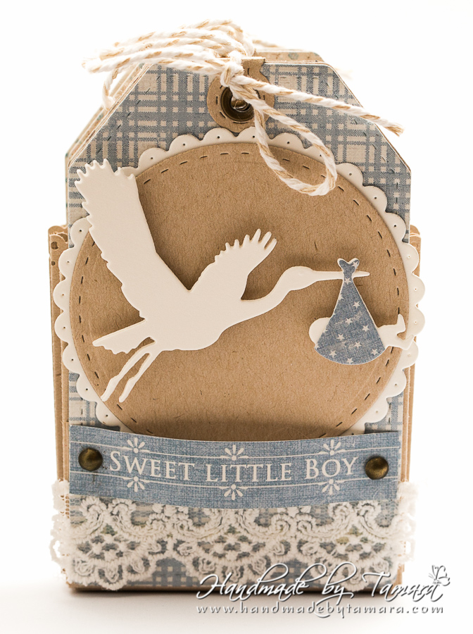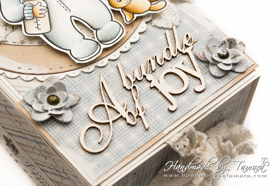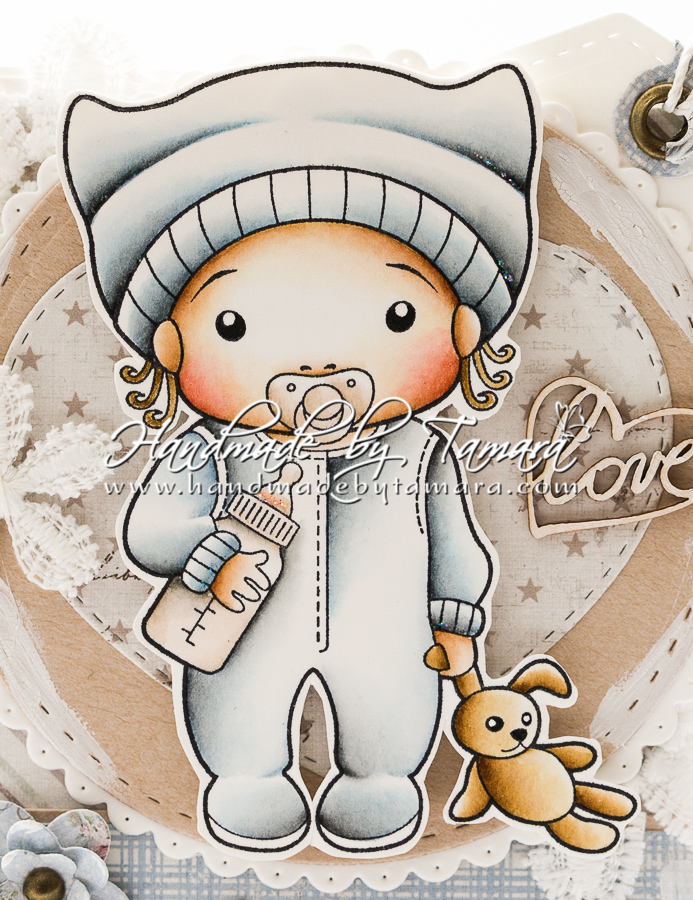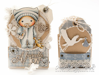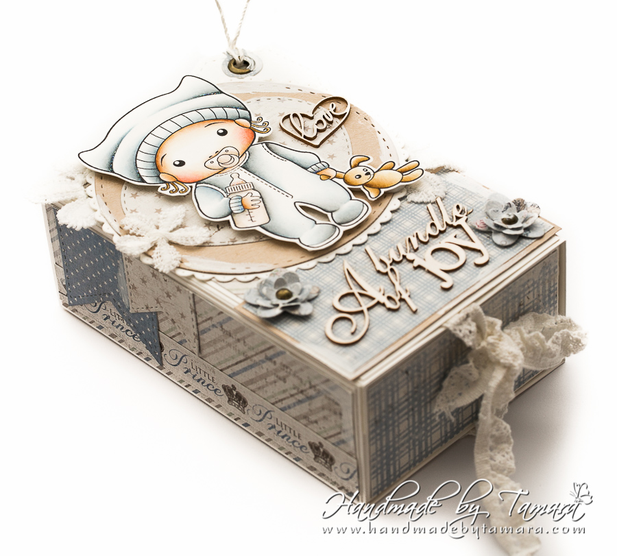 This week I made a box with drawer and a tag booklet for Baby BOY. I used Baby Marci and coloured her in blues. I got the idea for the tag booklet HERE.