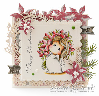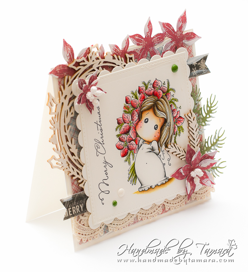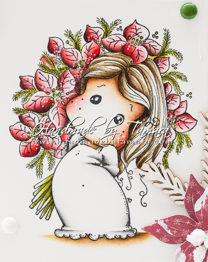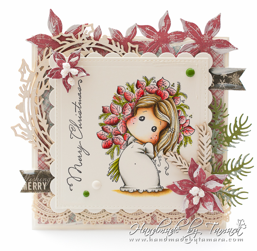 Today I’m sharing with you a Christmas card featuring Sparkle Poinsettia Tilda from Waiting for Christmas coll., 2014. I absolutely love this Tilda, i’m sure I’ll be using her a lot in the years to come too.