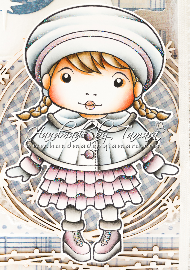 I used Winter Wishes Marci and coloured her with my distress markers and ink pads.