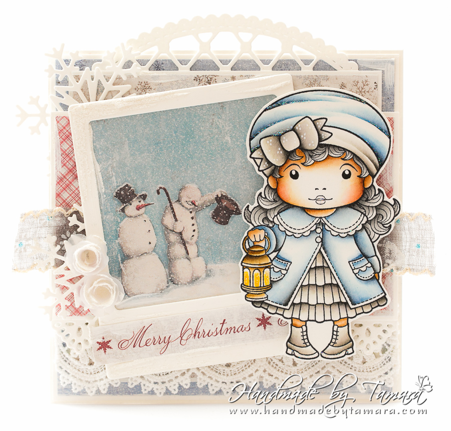 For this card I used Christmas Lantern Marci. She’s one of the old lllc images, but really pretty.