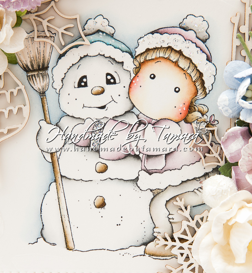 Today I’m sharing with you a card made for I am roses design team. I used one of the oldest stamps in my Magnolia collection, called Snowy hug. This stamp was released in 2010, Merry Little Christmas collection.