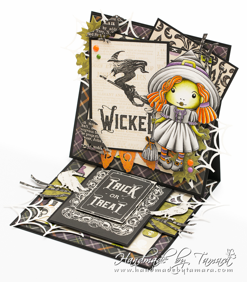 For my dt project I made an easel card with Witch Marci. I had these awesome Echo park – Hocus Pocus papers and I really enjoyed making this card.