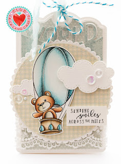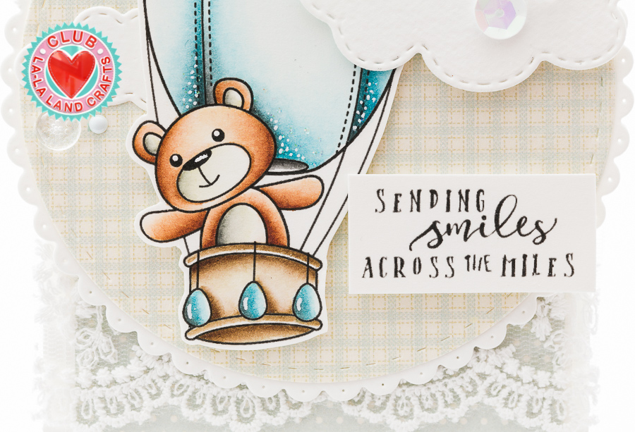 On this tag I used one of the old la-la land crafts dies, Stitched Sun and Clouds. I just thought flying between the clouds will look cute and I like how it turned out.