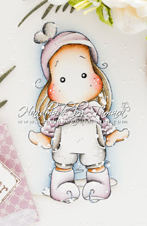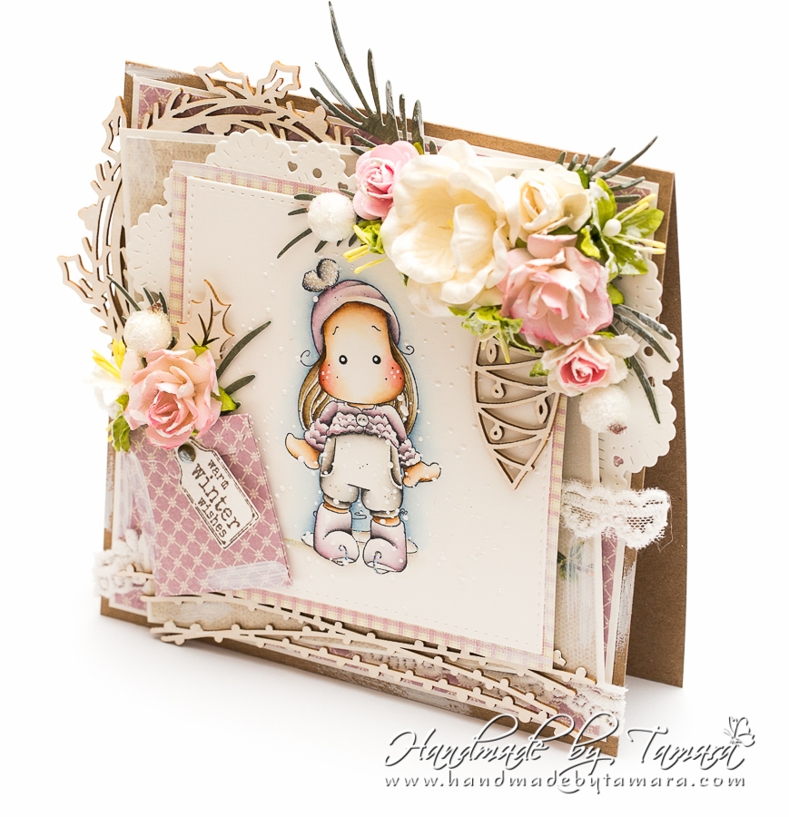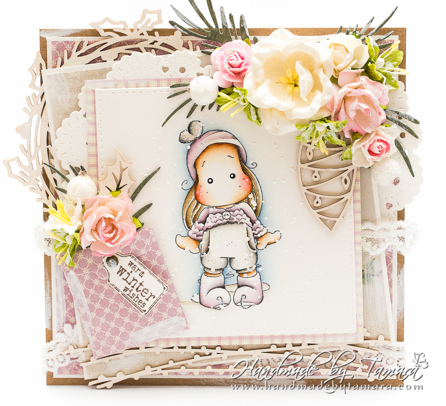 I’m continuing with posting this year’s Christmas cards. I have a few more to post, hehe. On this card I used Ice Tilda from Aspen Holidays collection, 2016. I coloured her with Distress inks and added a bit of chunky white frantage arround her to create a falling snow effect.