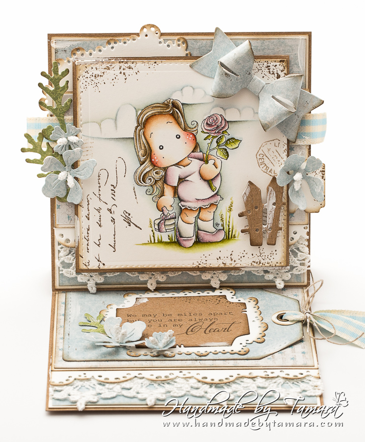 Today I’m sharing with you an easel card I made with one of the new Magnolia stamps from 2016 Advent calendar. I don’t know her name, but she sure is pretty.