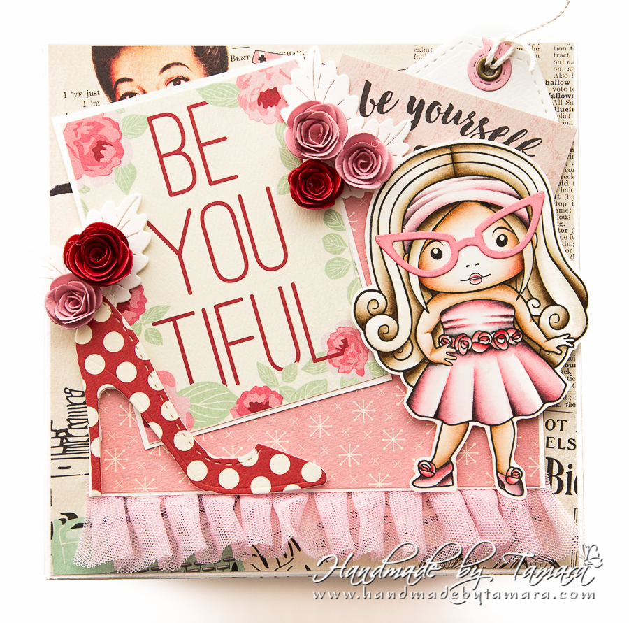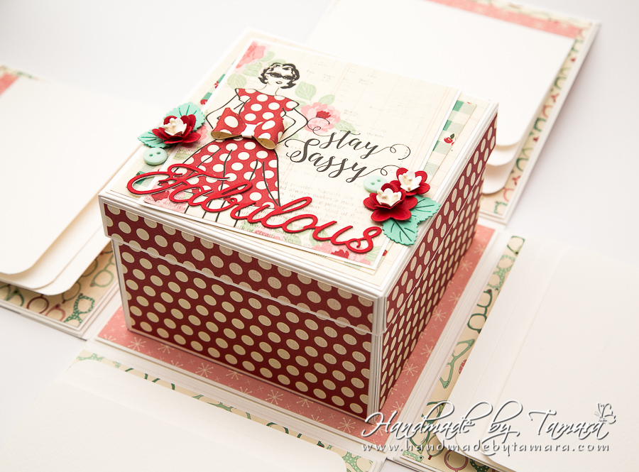 6x6x6″. You can also see the new die Stilleto (the shoe). Papers used on this project are from Authentique – Fabulous collection.