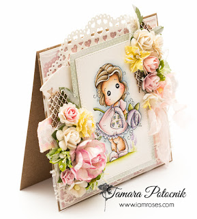 My first 2017 project is a Birthday card full of pretty I am roses flowers. I used a Magnolia stamp (Tilda with big big rose) and coloured her with Distress inks.