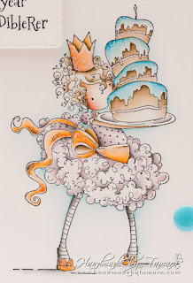 I coloured the image with Distress markers and ink pads. I made a CAS card, I only added 2 die cuts, one with sentiment and 3 tiny embellishments.