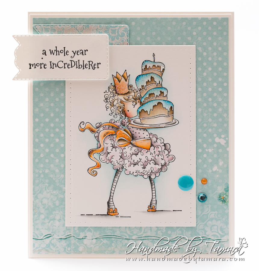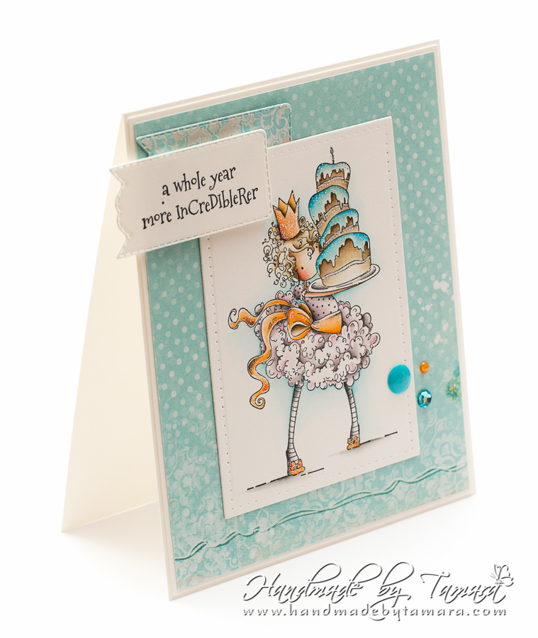 I’m sharing another Stamping bella card I made. This cute image is called BREE loves  BUTTERCREAM, too cute, right?! I coloured her once before, but I had to do it again. Cuteness overload!