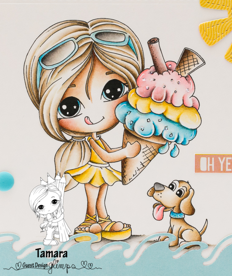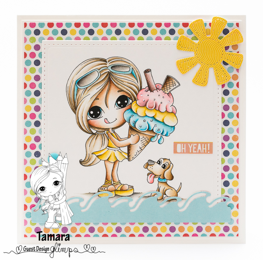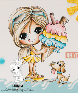 A few weeks back Veronica invited me to do a guest dt post for Glimps digital stamps. For my gdt card I chose Gelatone digi stamp (that would be Icecream, lol).