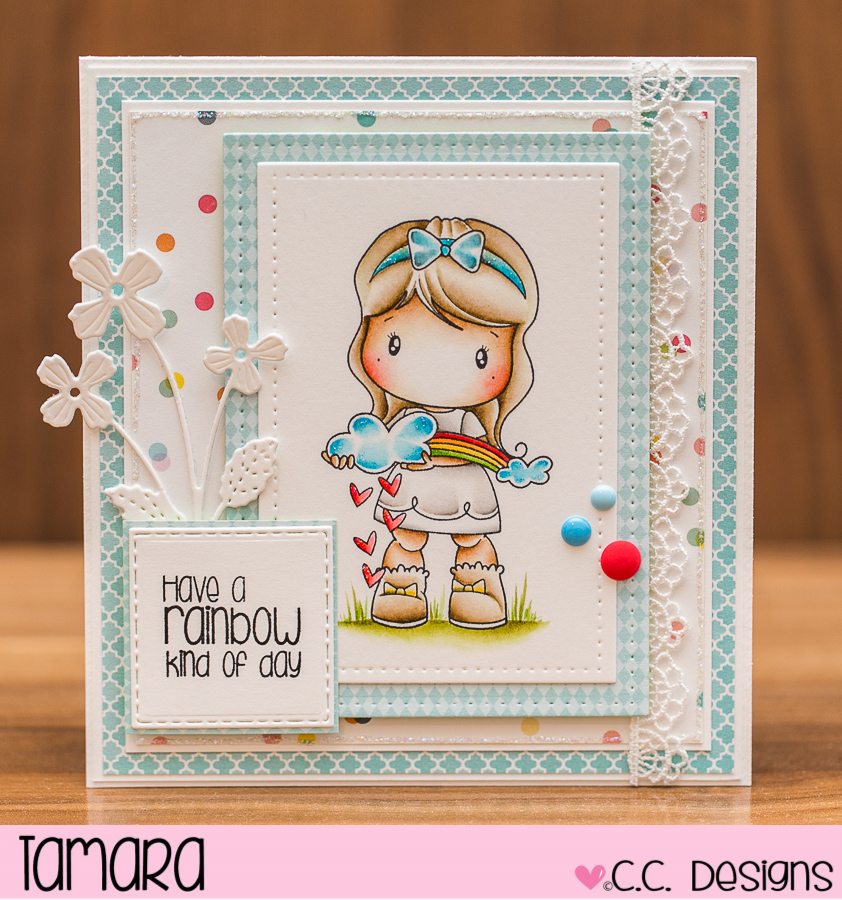 Today I’m sharing with you a card I made with the new release stamp called Rainbow Lucy. I absolutely love this stamp, I made two cards with her. hehe …