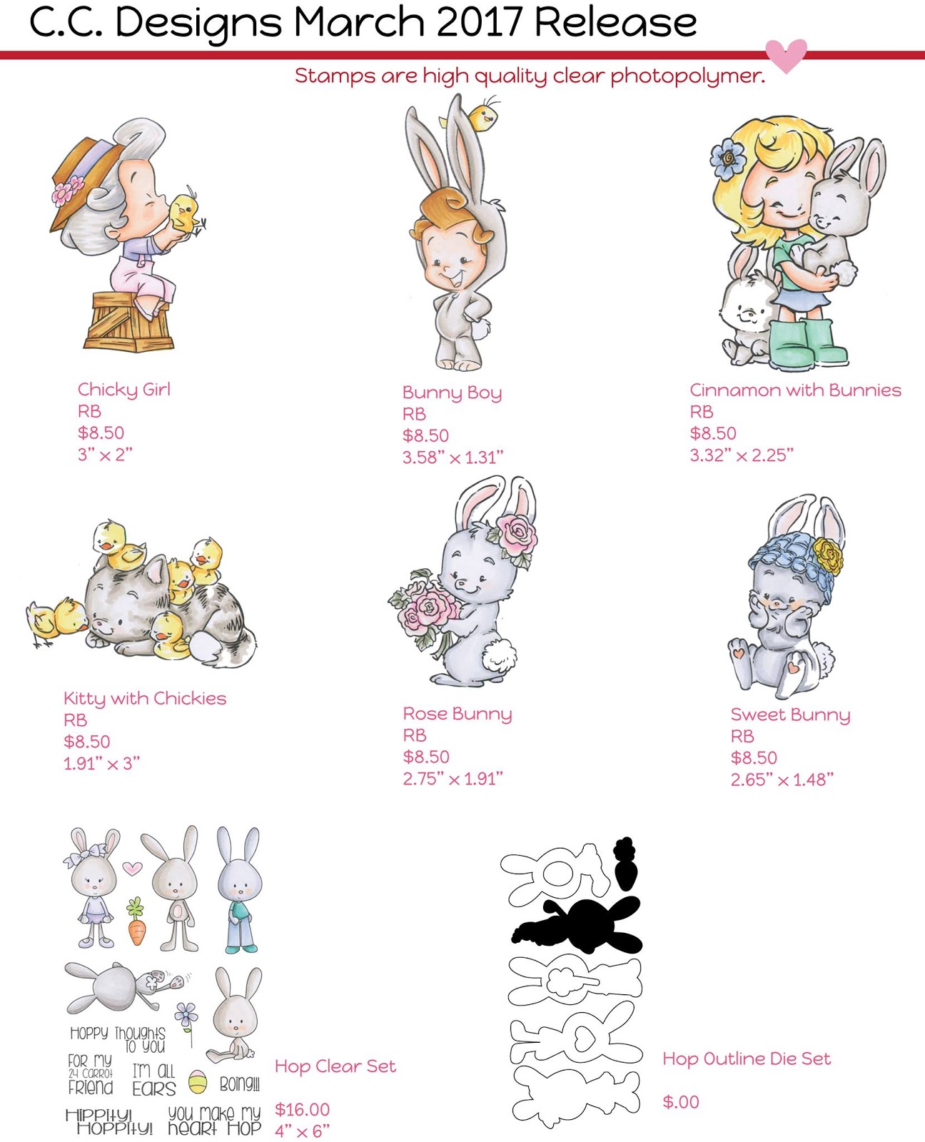 Today is RELEASE DAY for the new MARCH Stamps at C.C. Designs. As you have seen from our Preview Days, these new stamps revolve around Spring and Easter with some of the cutest chickies, bunnies, and kitty around!