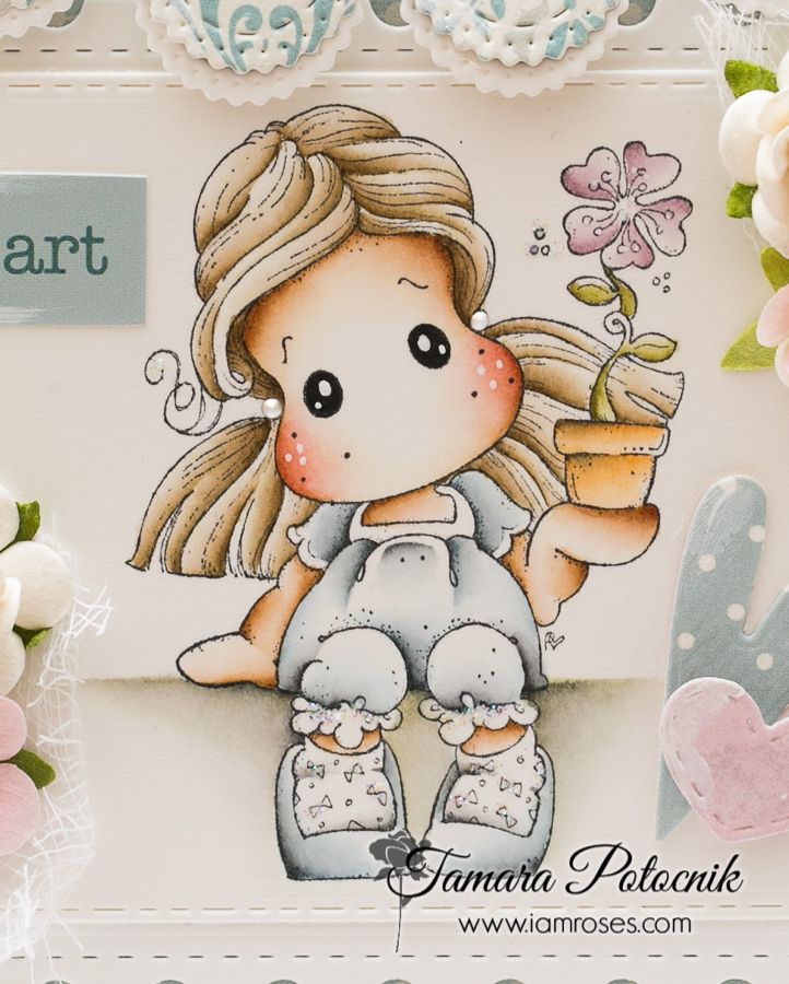 Today I’m sharing with you a Magnolia card with one of the old stamps called Cute Sakura Tilda. She was released in 2015 as part of a Sakura collection.