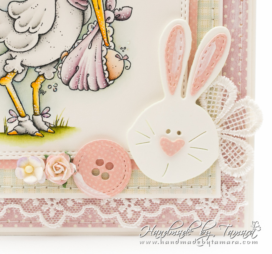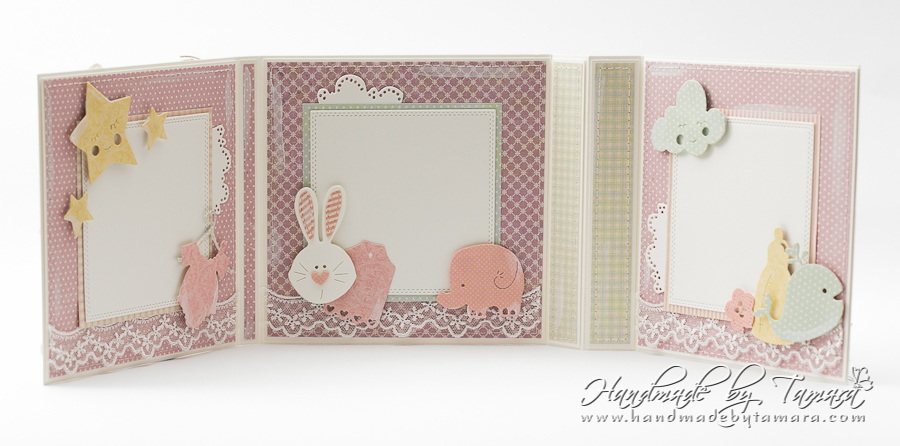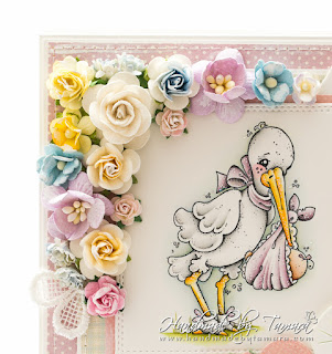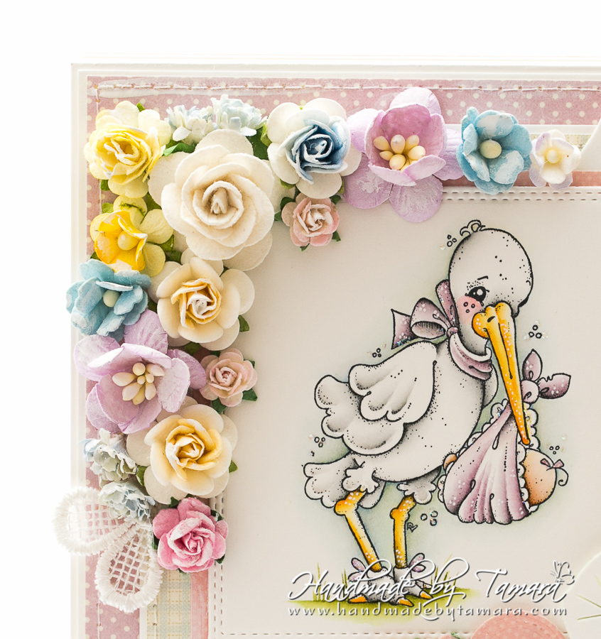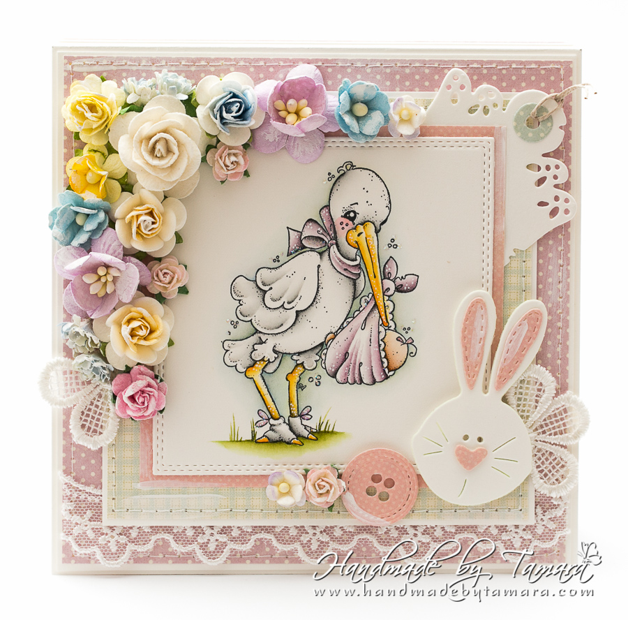 Today I’m sharing with you a mini Baby album. For this mini album I used Delivery from Heaven stamp from Magnolia and coloured it with Distress ink pads.