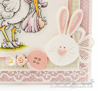 On the front I used lots of pretty I am roses flowers, all in my fav pastels. Papers used are from Pion, Easter Greetings collection.