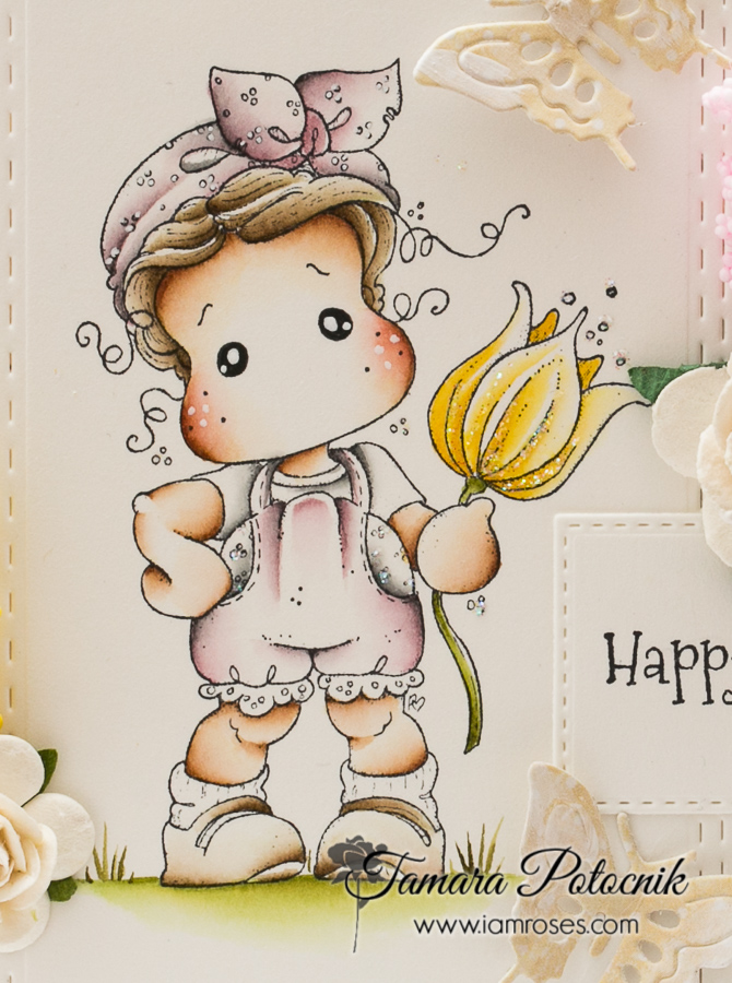 This is one of the stamps I really like using. She’s adorable and fun to colour in. I used distress ink pads for colouring.
