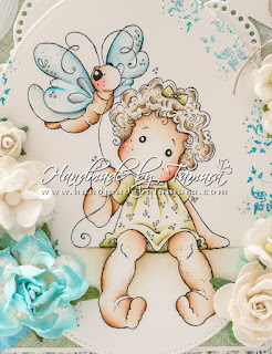This image is from Magnolia’s Once upon a Time collection, 2013 and it’s called Sitting Tilda with Butterfly. I used Distress ink pads for colouring.