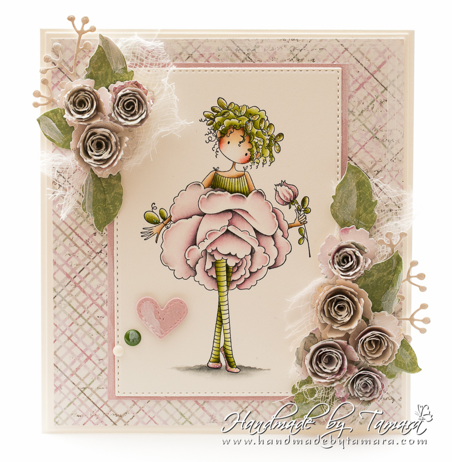 Today I’m sharing with you a card made with Stamping Bella’s image called Tiny townie Garden Girl ROSE. I absolutely love this image, it was super easy to colour in and making a card with it was pure joy.