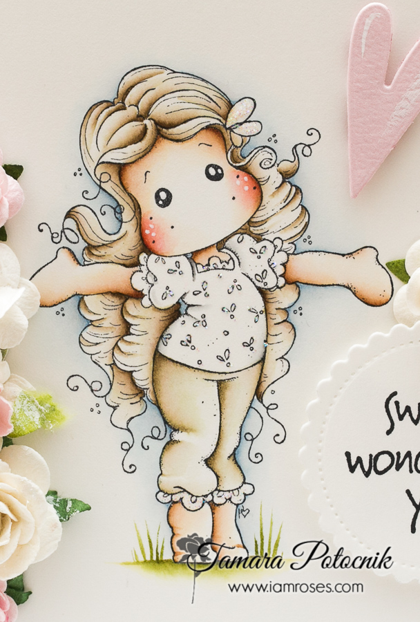 Before I start with all the work I have planed for today I would like to share a Magnolia card with you. I coloured Tiptoe Tilda from Magnolia’s Animal of the year collection, 2014. I can’t believe these stamps are already 3 years old. omg …