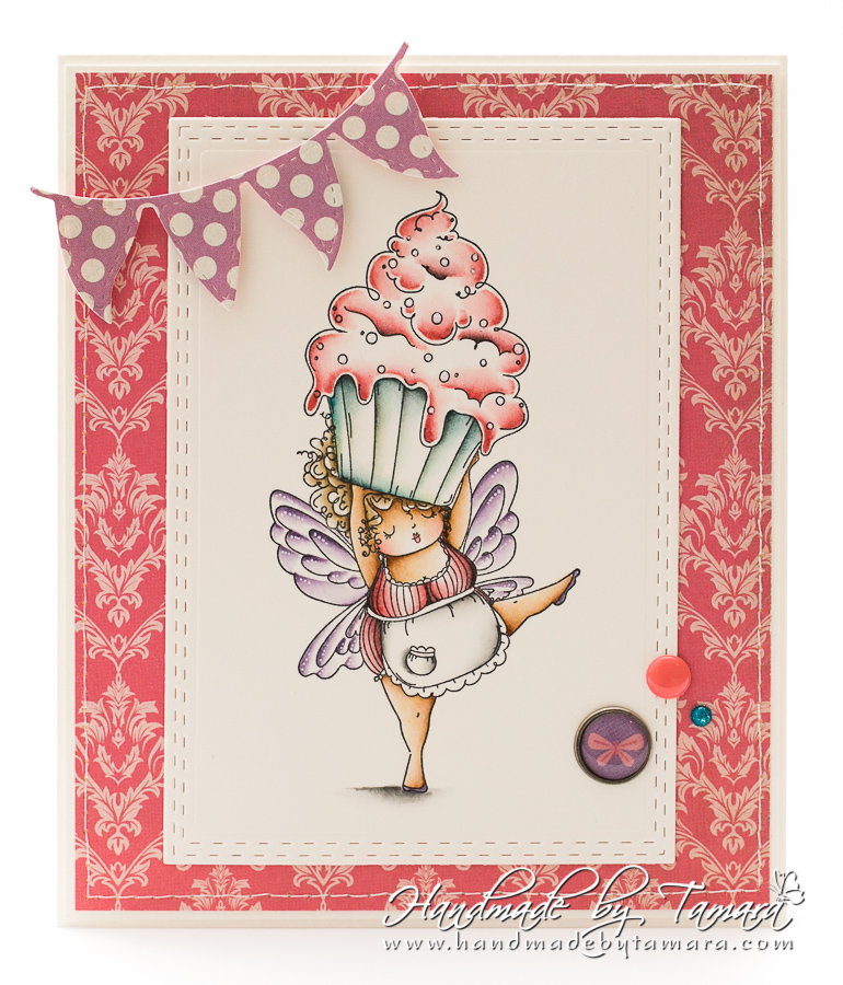 Today I’m sharing a Stamping Bella card. I made this card to participate in Stamping Bella’s Bellarific Friday challenge. The theme of this week’s challenge is Birthday/Celebration. I made a Birthday card with Edna with a Cipcake on top. I loveeee all Edna stamps, can’t wait to get the new one which was ordered a few days ago (and a few others jumped into the cart …lolol)
