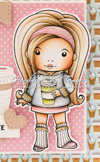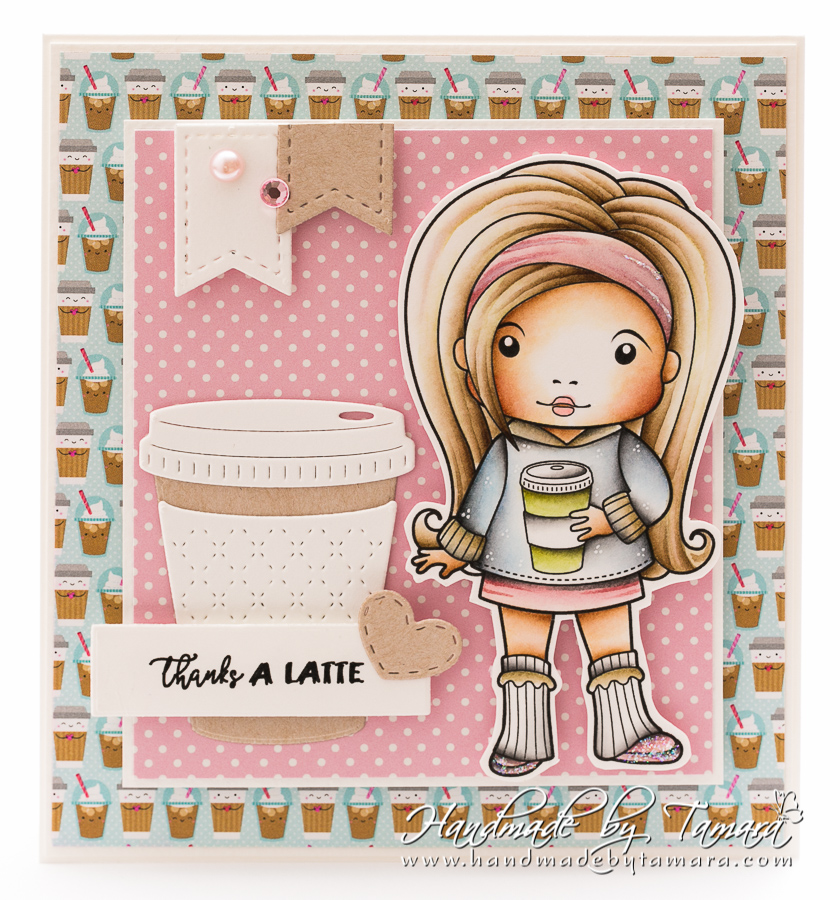 For this card I used Coffee Break Marci. I just loveeee making these coffee themed cards. I added matching papers from Doodlebug. Aren’t they adorable?