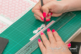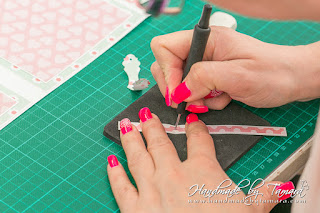 Holes must be a little closer than the holes on the tab die cut so that when you’ll add eyelets it will look like a little hook.