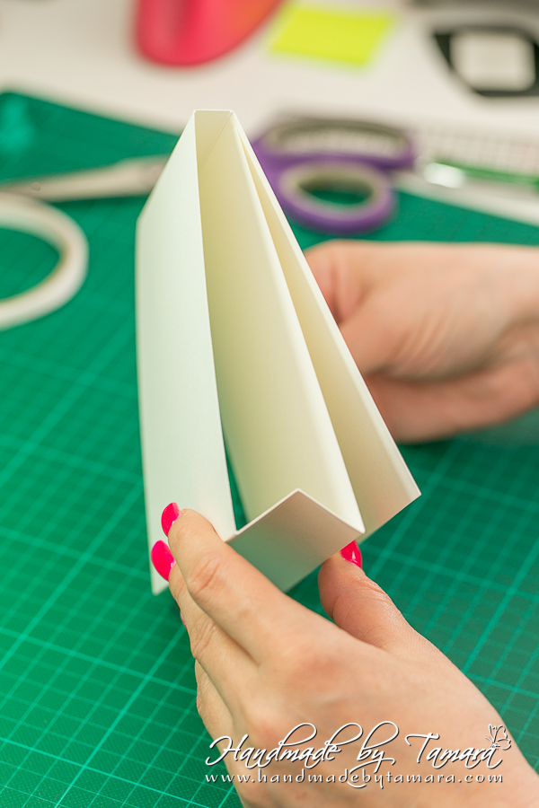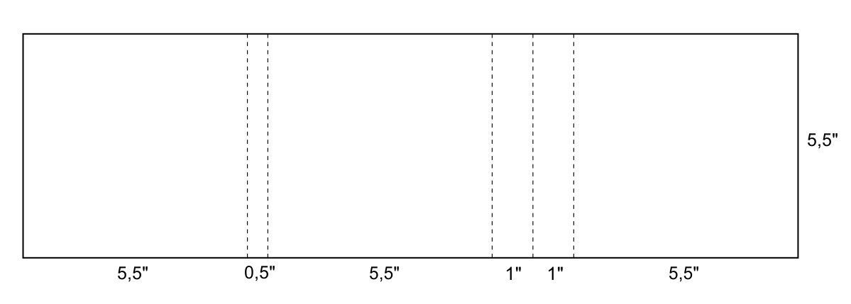 Take white cardstock a cut a rectangle size 5.5″ x 19″. Make score lines like on the sketch bellow (score at 5.5″ – 6″ – 11.5″ – 12.5″ – 13.5″).