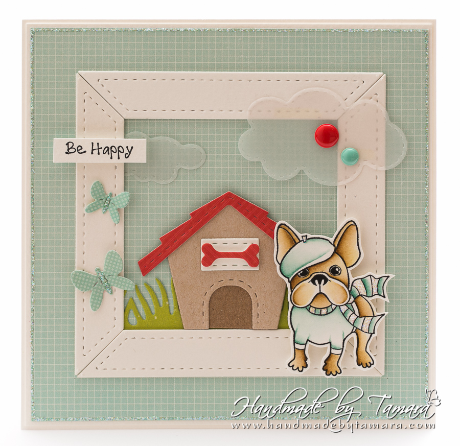 It’s Friday again and time for another Friday Inspiration card for La-la land crafts. The theme of this week’s challenge is Anything goes. I created a cute Frenchie card for all the Frenchie lovers out there. The colours on the photo are not as happy as they are in real life though.