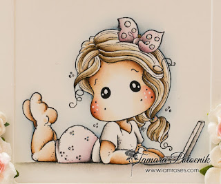 Good Morning! Today I have a Magnolia card for you. I made this one a few months back. I really like all the stamps from Magnolia’s WWW collection 2015, they are small and so cute. This cutie’s name is Follow me Tilda.
