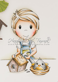 Image is called Owen Building Birdhouse. I coloured it using Distress ink pads.