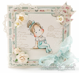 I have one more card to share with you today. I coloured one of the new Magnolia stamps called Sitting Denim Tilda from Denim collection, 2017. I also used a few background stamps from one of the Vintage kits. Image was coloured using Distress ink pads. Dies used are from Ldrs Creative.