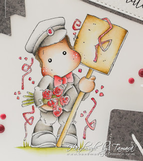 Image was cut out using stitched square dies and coloured with Distress ink pads. I added one graduation hat made with the new Student Cap Dies also from Magnolia.