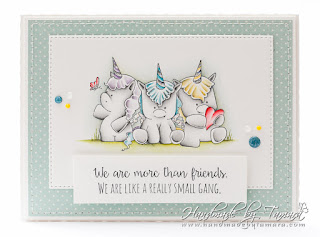 Today I’m sharing with you my latest Stamping Bella project. I made an envelope card. I saw the idea on the internet (somewhere) and recreated it myself. For this project I used Set of unicorns from SB. I only used three unicorns on this card. I masked them together and colour them with Distress ink pads. My daughter is totally in love with this set of course she wants the envelope that I made. hehe