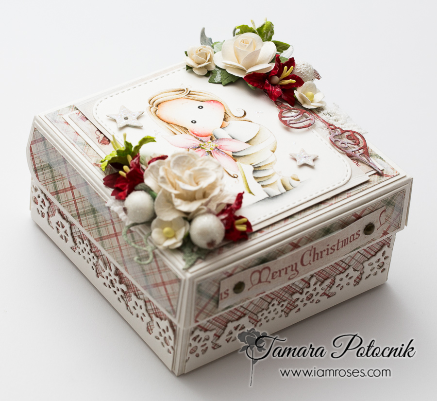 For my June challenge design team project I made a Christmas gift box. I used Poinsettia Tilda from Magnolia’s Aspen Holidays collection, 2016.