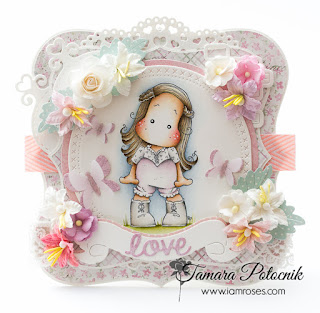 Today I’m sharing with you a Birthday/Love card made for I am roses design team. I used one of the new Magnolia images called Snowhite Tilda. Image was coloured using Distress ink pads.