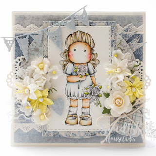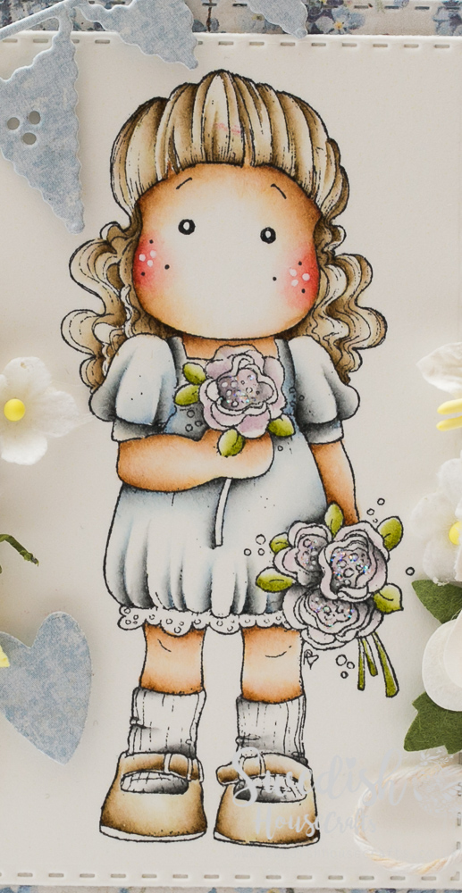 For my first project I made a Birthday/Friend card with one of the older Magnolia stamps. This cutie is called Tilda in the Garden.