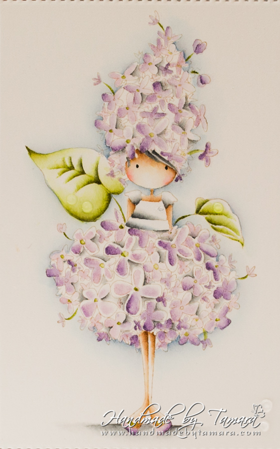 I’ve been doing a bit of no-lines colouring again. hehe … I coloured Stamping Bella’s Garden Girl Lilac with Distress ink pads. I loveeee all these super adorable Garden Girls and I absolutely love Lilac.