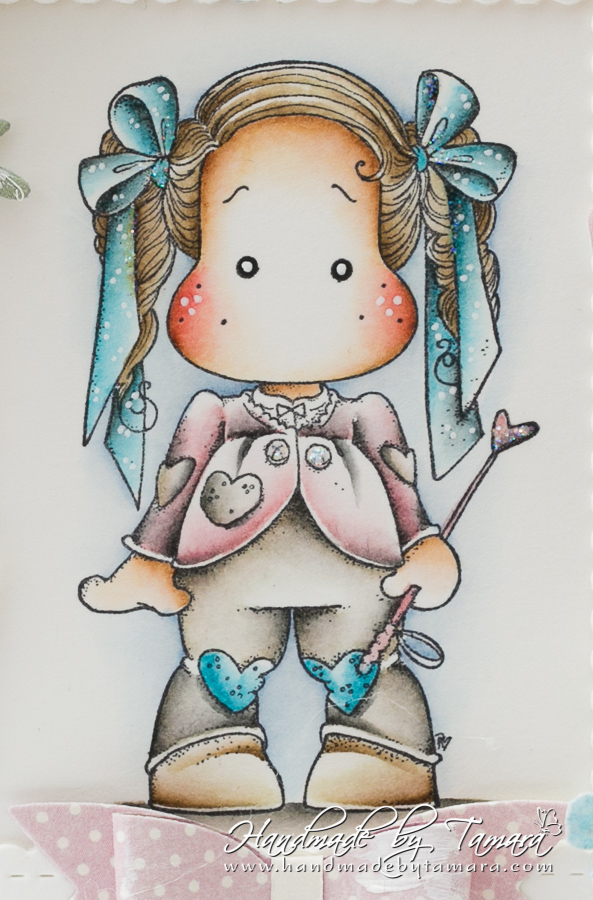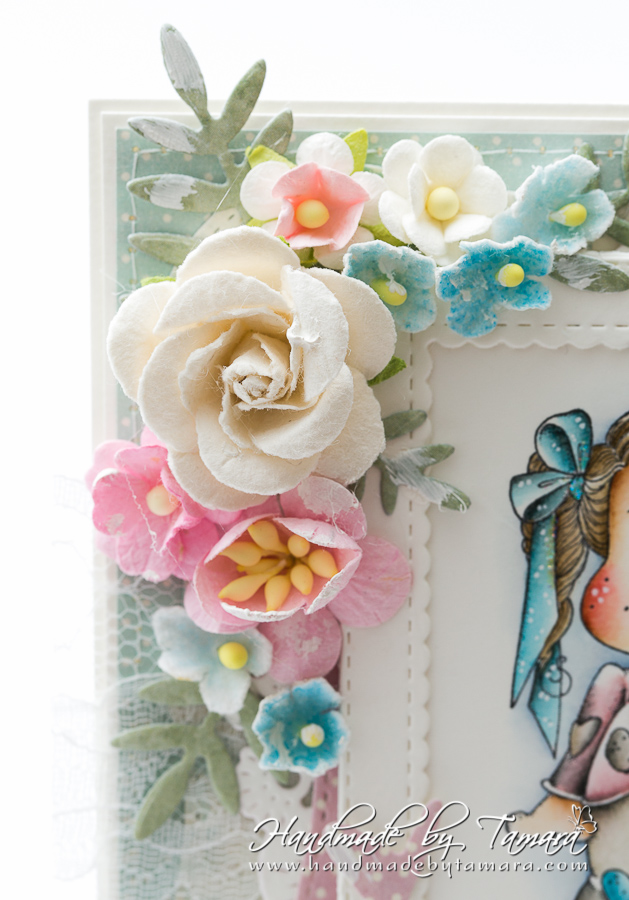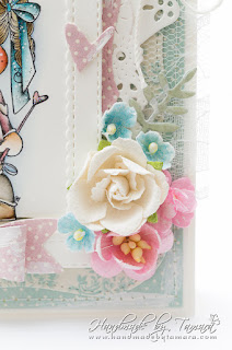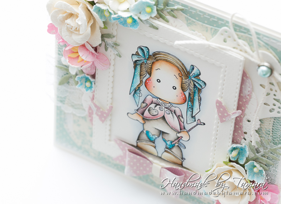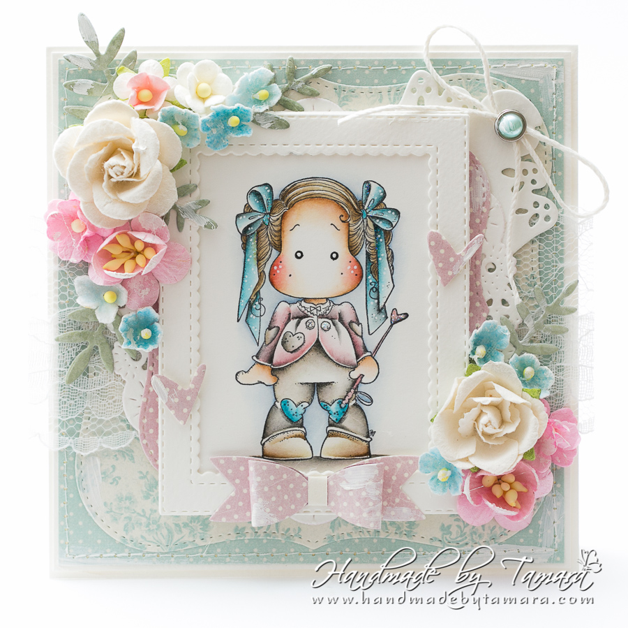 Today I have for you my brand new card made with Unicorn Tilda from the latest I belive in Unicorn collection. Image was coloured using Distress ink pads. I made a very girly card even though it’s not all pink.