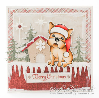 On my second new release card I used Christmas Frenchie. Image was coloured using Distress ink pads.