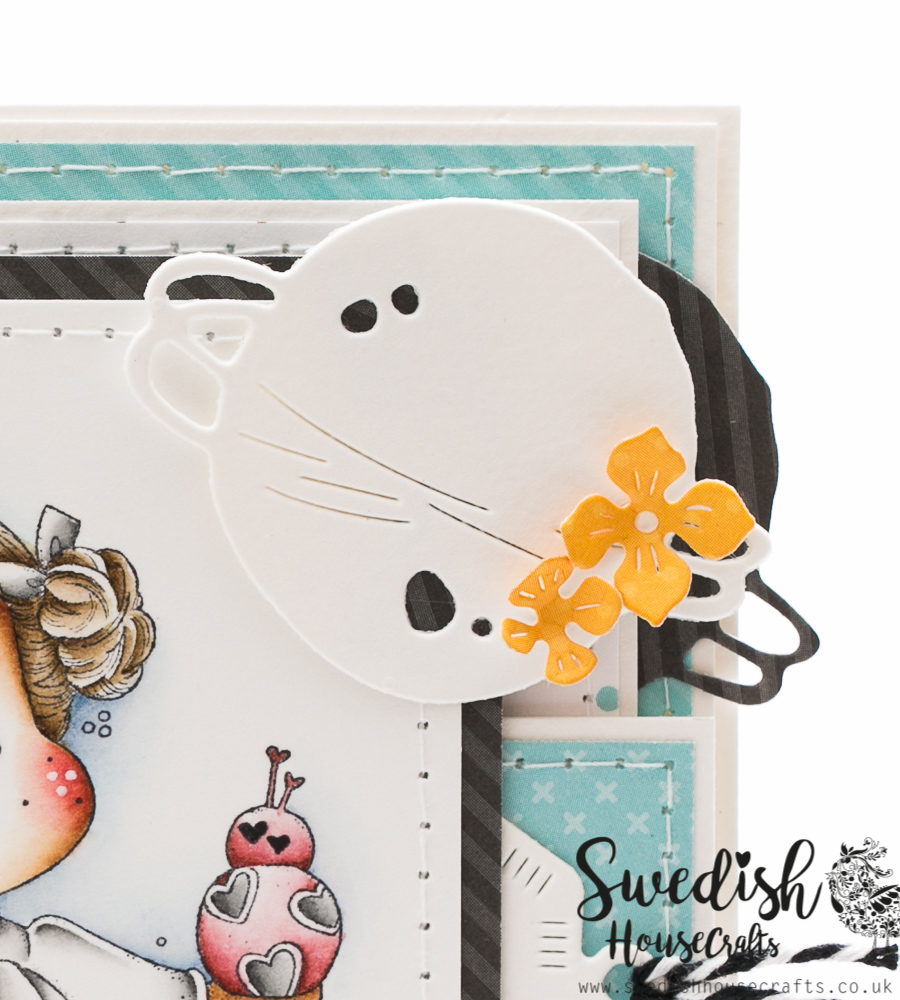 I masked two images together, Tilda with xoxo and Moon from Moon, Star & Butterfly Kit. Images were coloured using Distress ink pads.